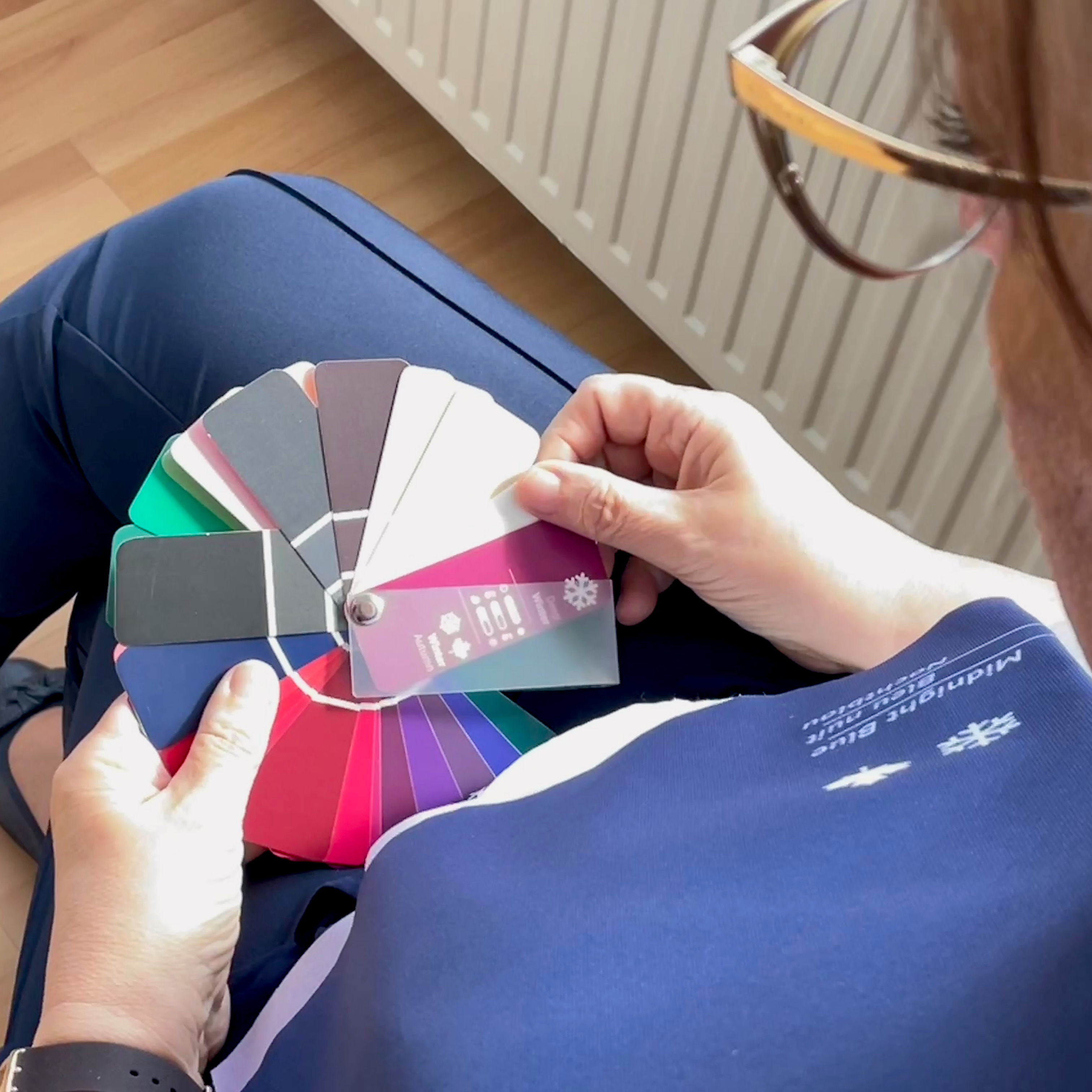Erfahrene Farbberaterinnen wie Sylvia arbeiten mit speziellen Farbtüchern, die unter das Gesicht gelegt werden, um herauszufinden, wie gut sie mit dem eigenen Look harmonieren. Am Ende der Sitzung hat man „seinen Farbtyp“ gefunden und erhält eine Farbkarte, die das Einkaufen zukünftig erleichtern soll.